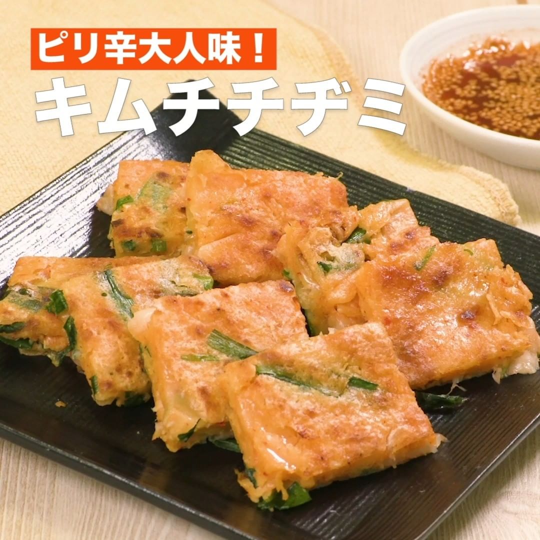 ニラの風味とキムチのピリ辛が美味しい!特製チヂミたれにつけて食べたらお酒が進む!家にある食材で簡単にできるおつまみです!