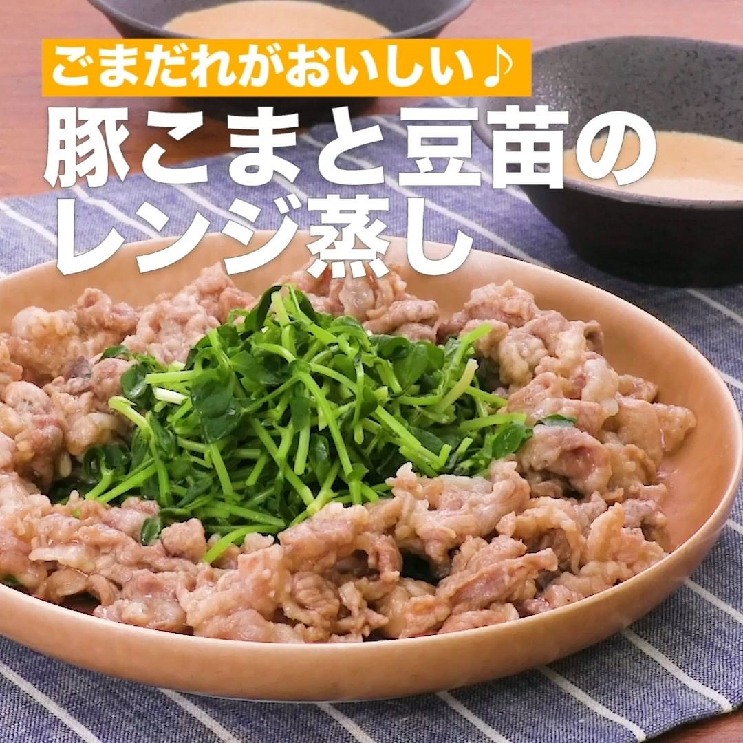 ②<ごまだれがおいしい♪豚こまと豆苗のレンジ蒸し>