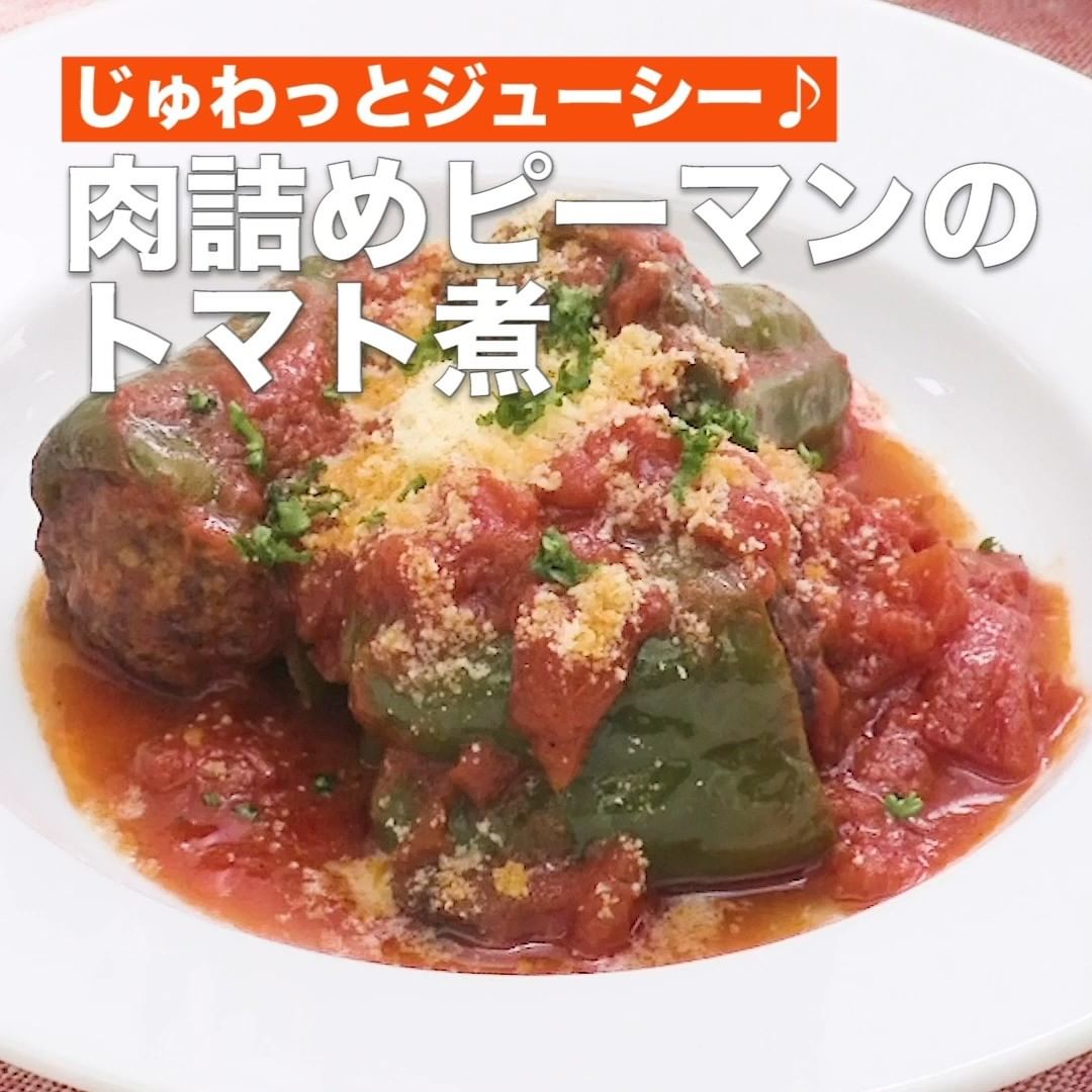 ⑥<じゅわっとジューシー♪肉詰めピーマンのトマト煮>