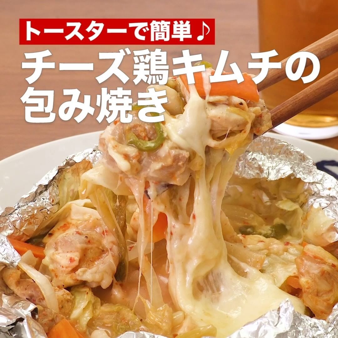 ④<トースターで簡単♪チーズ鶏キムチの包み焼き>
