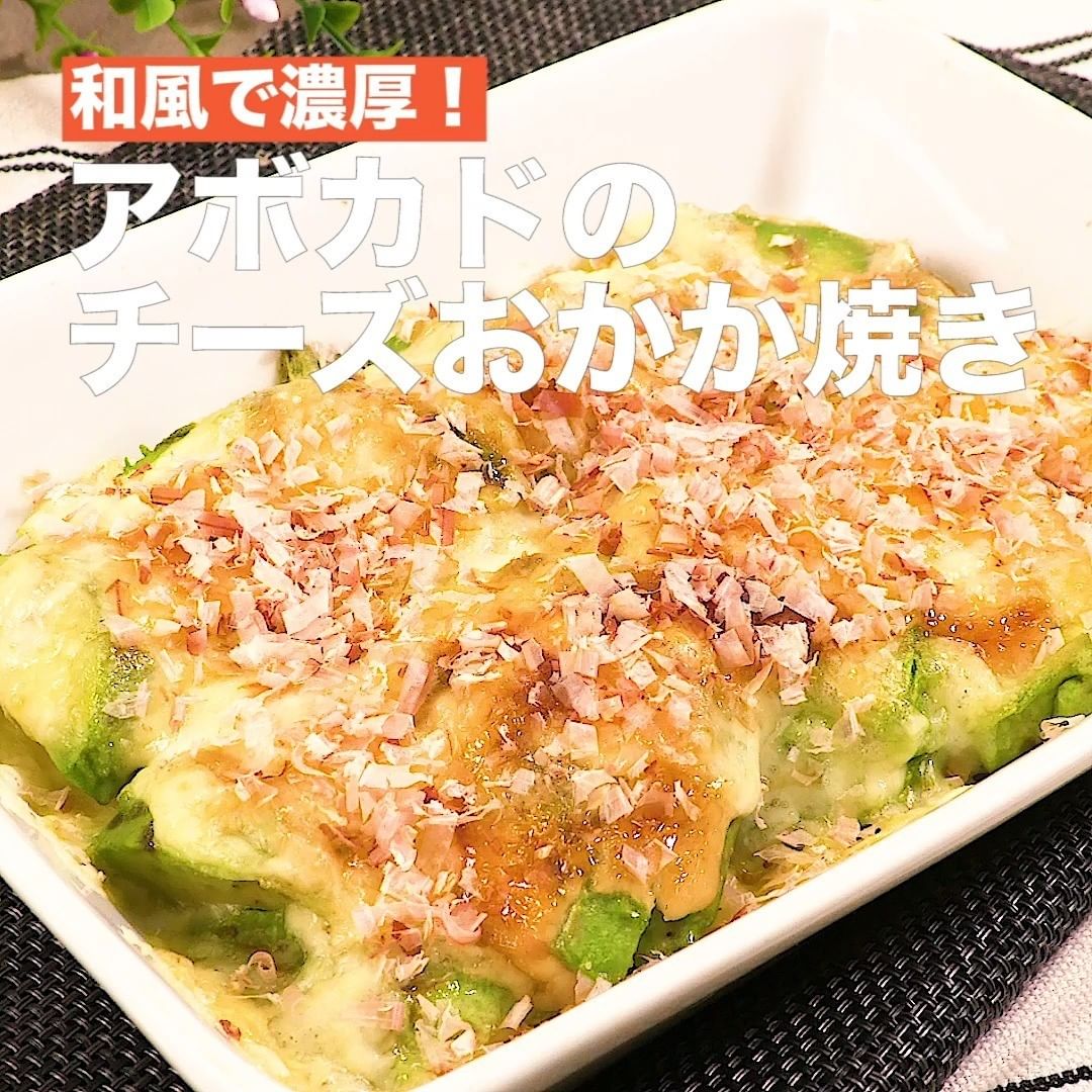 ⑤<和風で濃厚!アボカドのチーズおかか焼き>