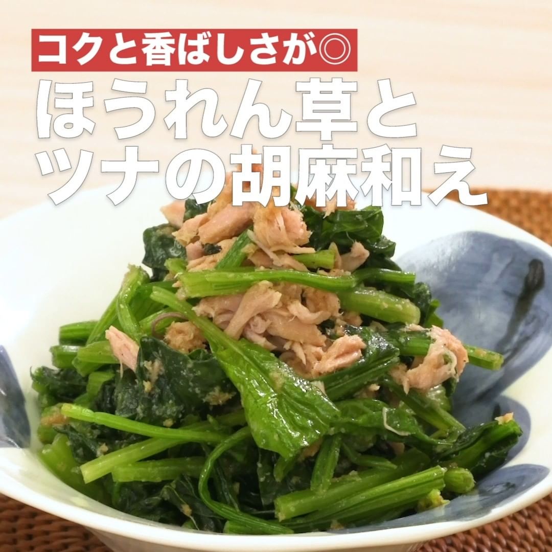 ⑤<コクと香ばしさが◎ほうれん草とツナの胡麻和え>
