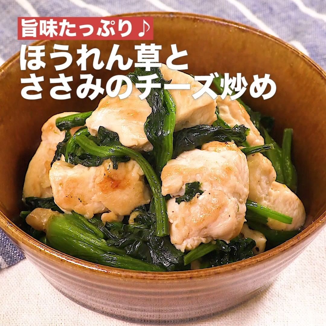 ④<旨味たっぷり♪ほうれん草とささみのチーズ炒め>