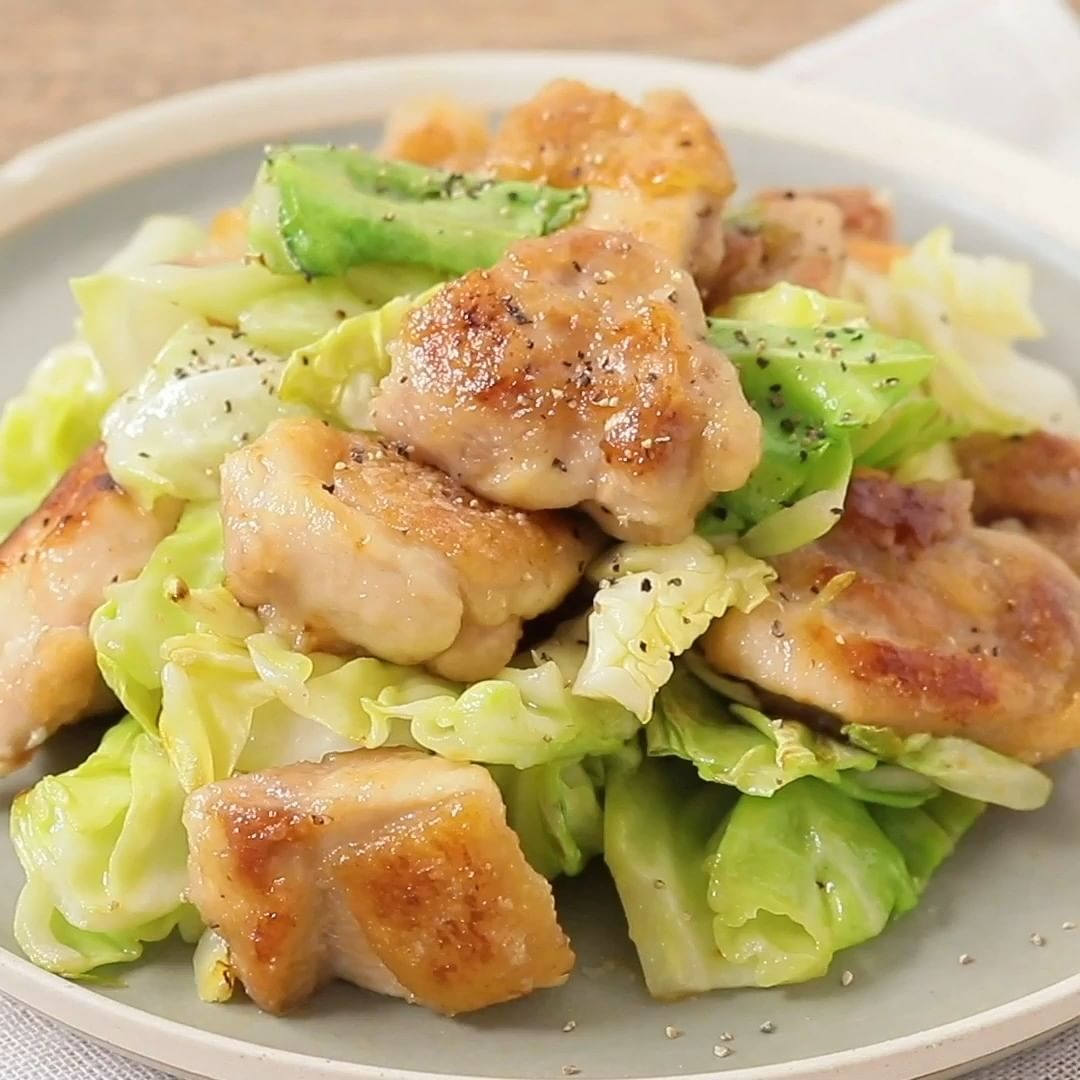 ①ごはんがすすむ!チキンとキャベツのガーリック炒め