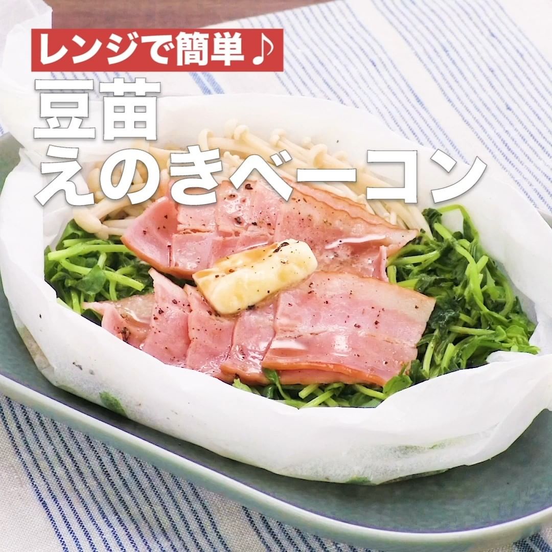 ①<レンジで簡単♪豆苗えのきベーコン>