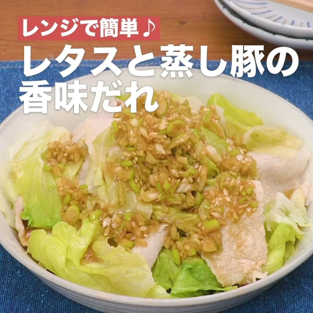 ④<レンジで簡単♪レタスと蒸し豚の香味だれ>