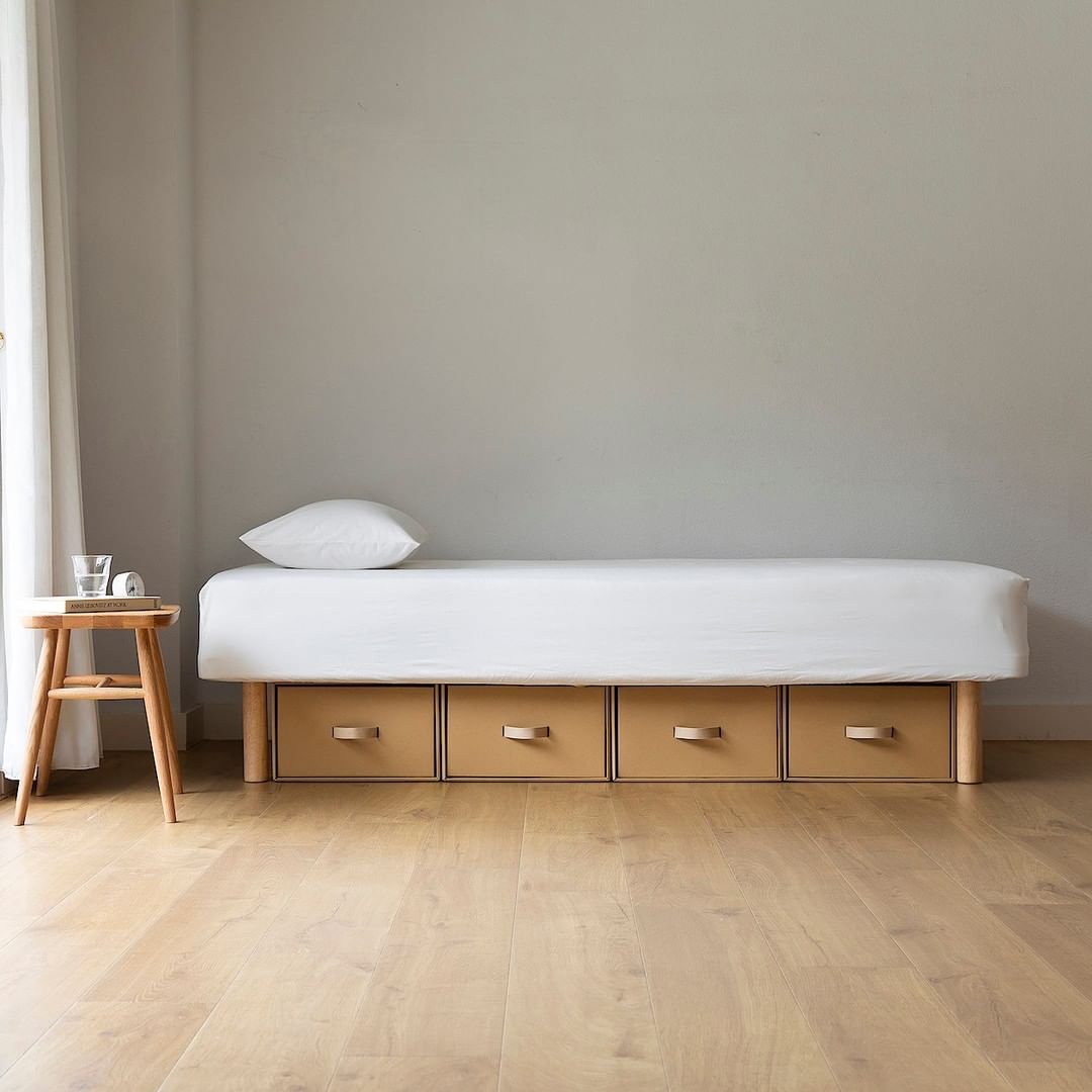無印良品の収納用品と大きさの規格を合わせており、収納用品をマットレスの下に入れることもできます。