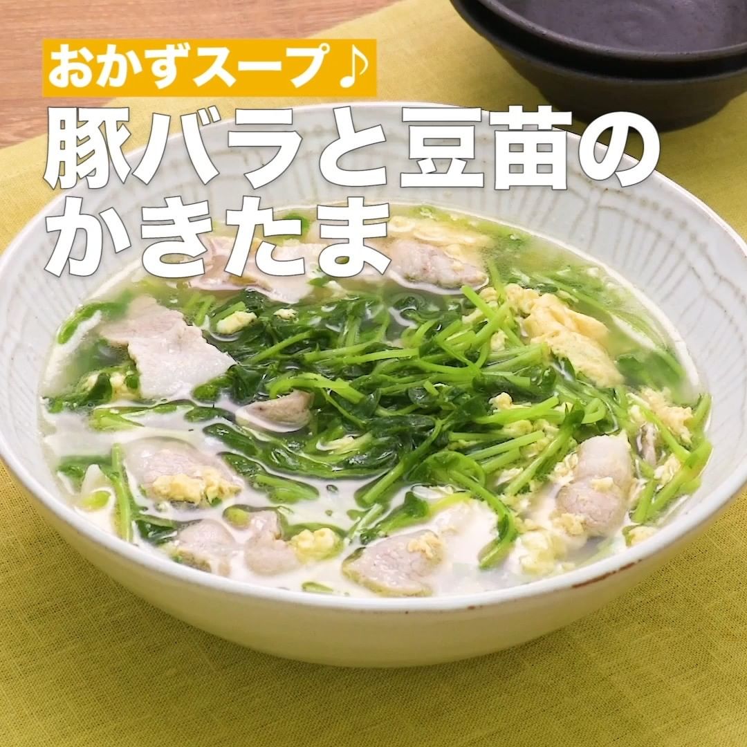 ③<おかずスープ♪豚バラと豆苗のかきたま>