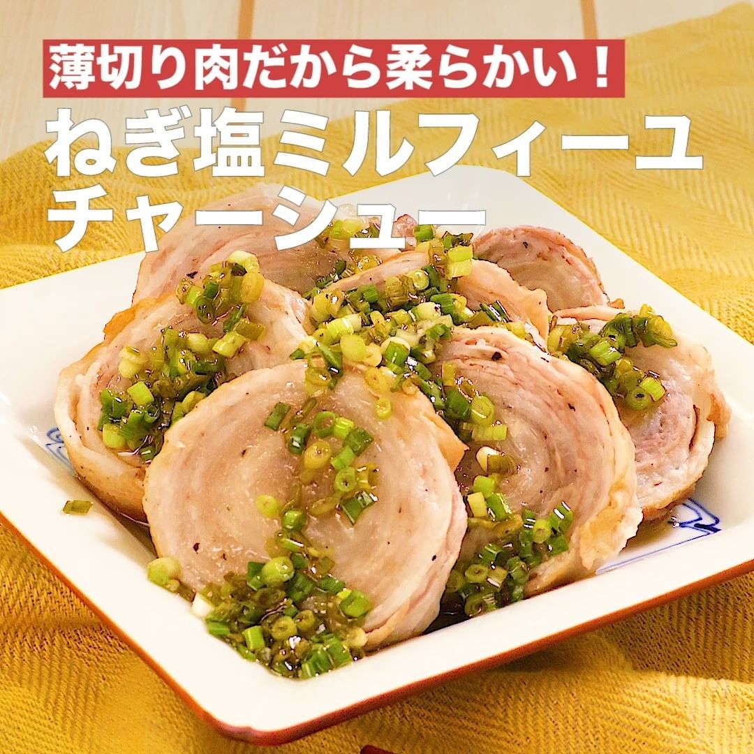 ②<薄切り肉だから柔らかい!ねぎ塩ミルフィーユチャーシュー>