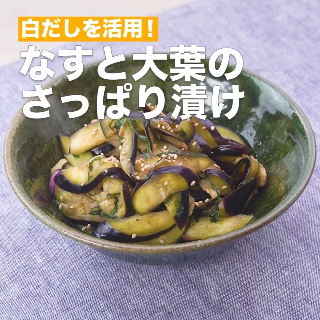 なすの浅漬けレシピのご紹介!白だしとお酢を使ってさっぱりとした仕上がりです。お好みで大葉の代わりにみょうがを加えてもおいしいです。さっと作れる副菜としてぜひお試しください♪白だしは製品によって塩分量に違いがあります。詳しい内容は注意点をご確認ください。