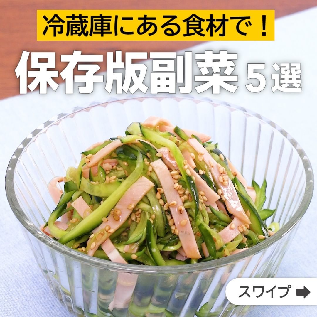 ①<冷蔵庫にある食材でできる!ハムときゅうりのごまサラダ>