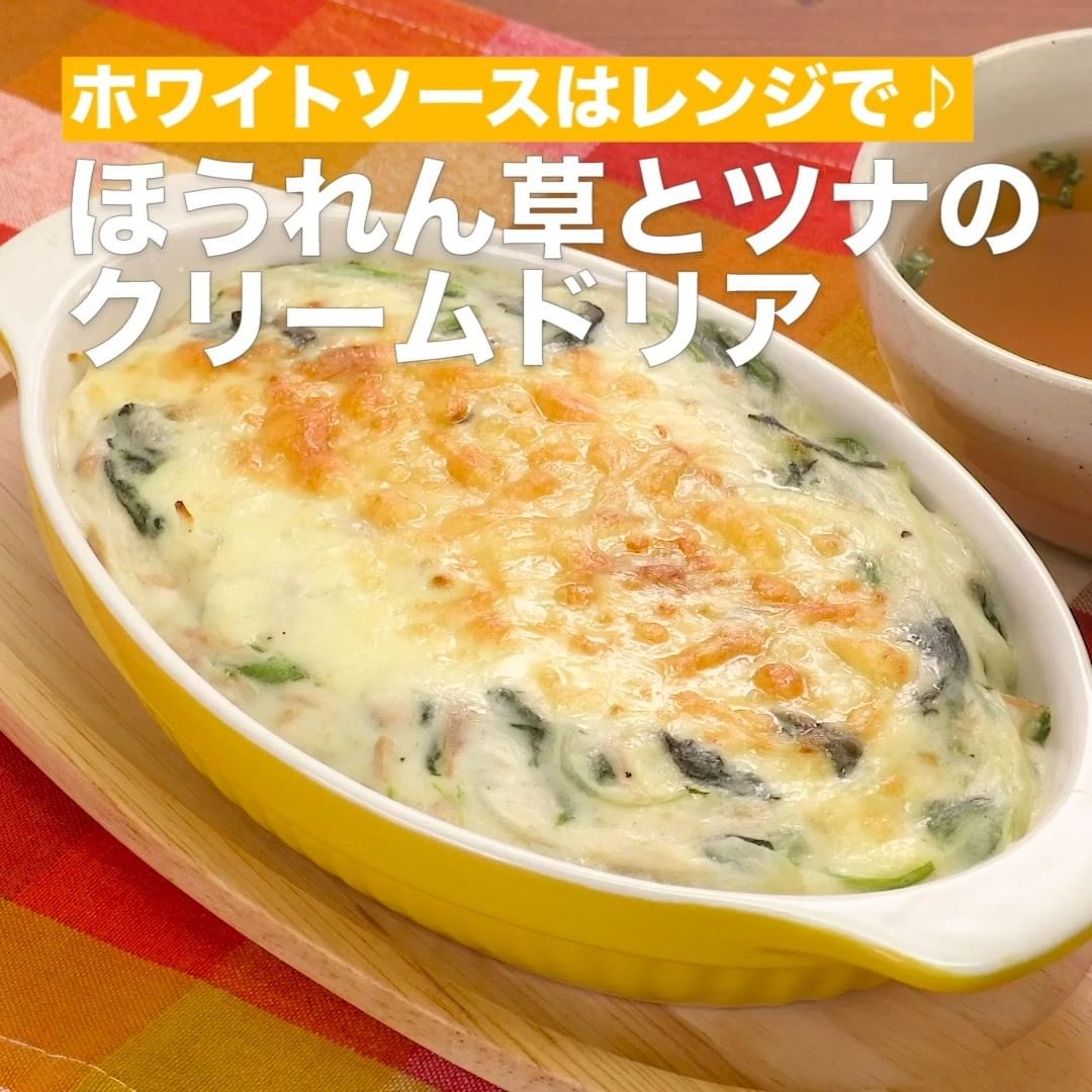 ⑤<ホワイトソースはレンジで♪ほうれん草とツナのクリームドリア>