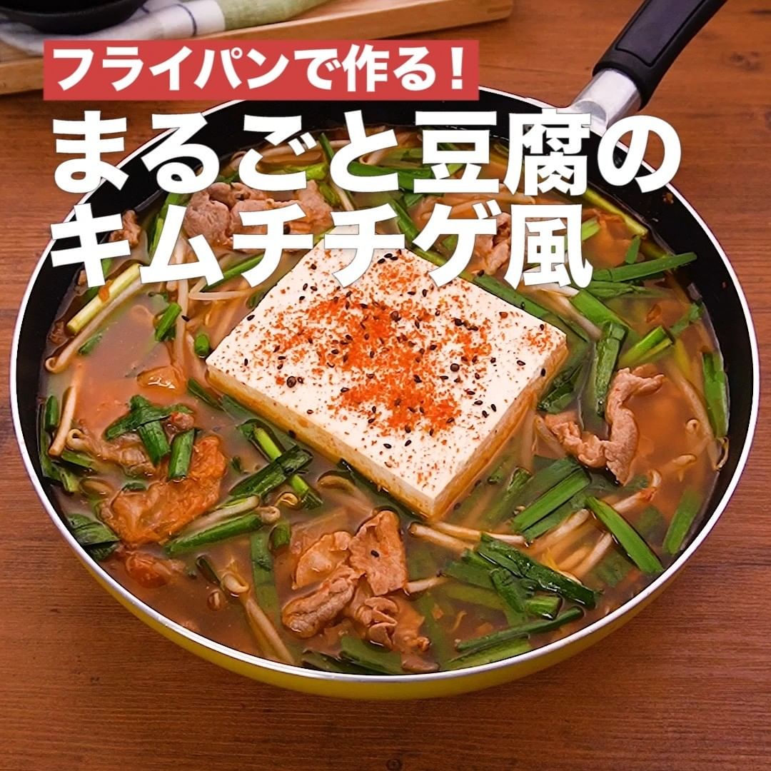 ①<フライパンで作る!まるごと豆腐のキムチチゲ風>