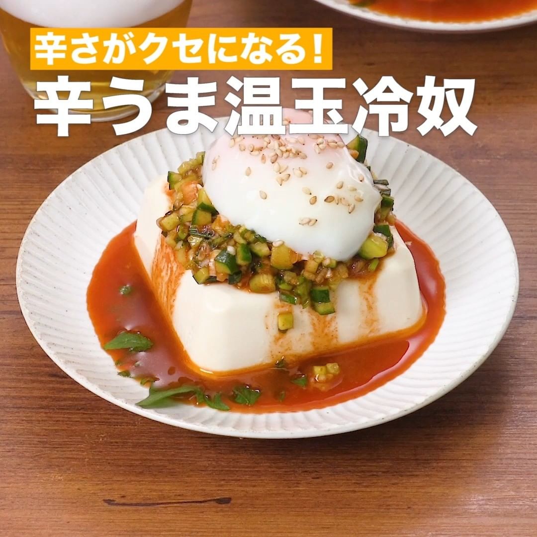 ささっと出来て、 おつまみやさっぱり小鉢としてもオススメな1品です。辛うまだれと温泉卵がよく合います♪
