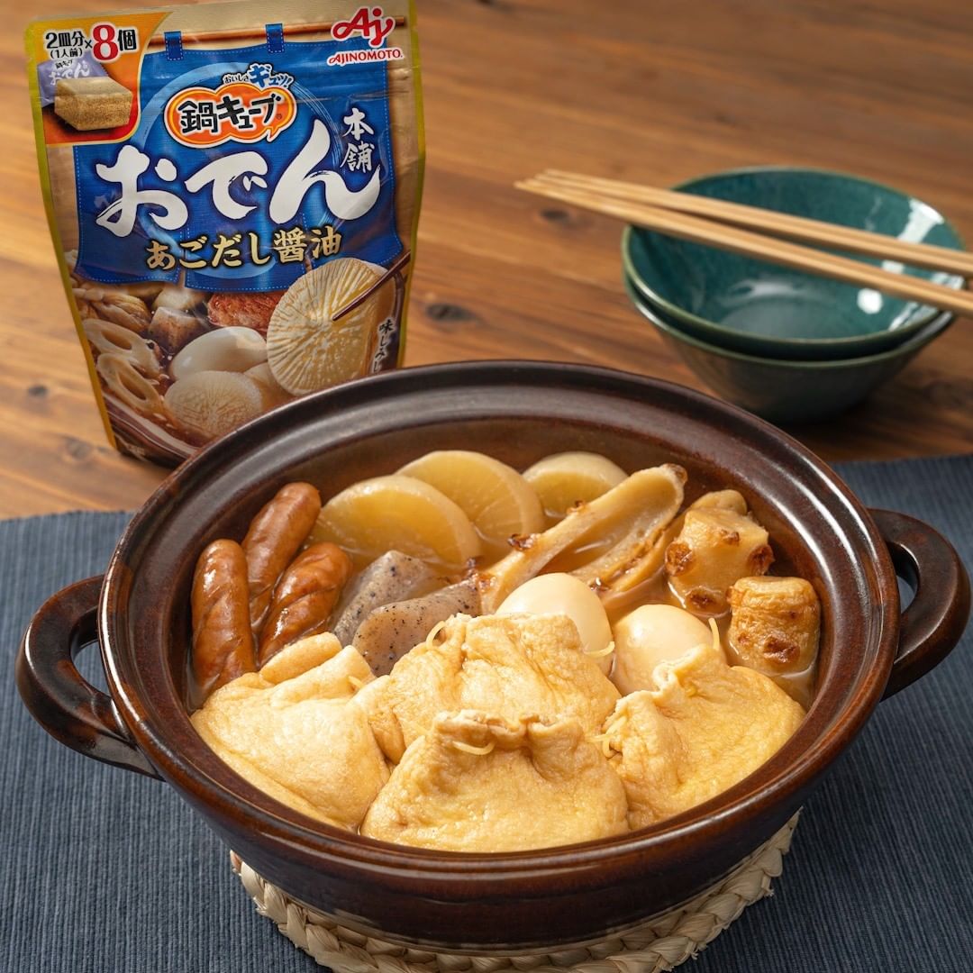 「鍋キューブ®︎ おでん本舗」あごだし醤油 を使うことで、簡単時短にしみしみおでんが作れちゃう♪