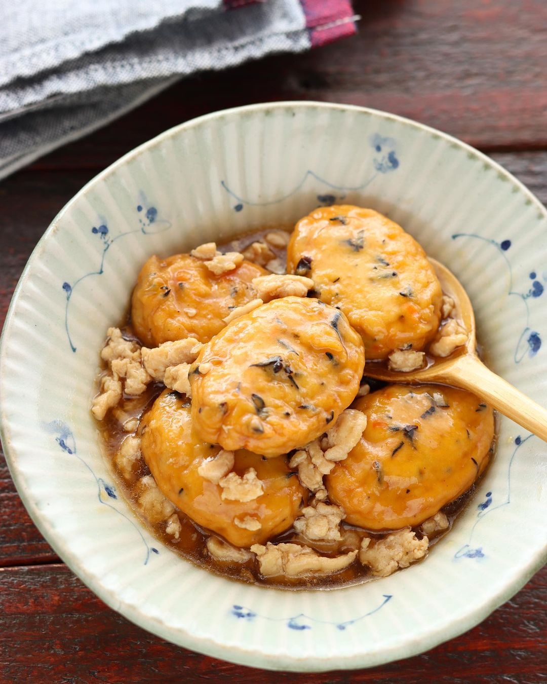 鶏ひき肉入りのだしあんかけでボリューム満点💯