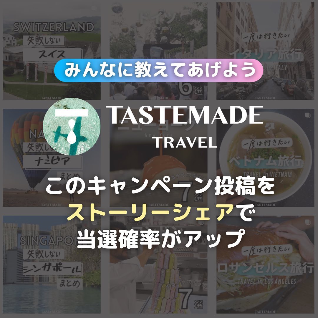 「驚きと発見」をお届けする200万フォロワーのテイストメイド @tastemade_japan のトラベル版アカウントがスタートしました✈️それを記念して旅行が好きなあなたとその友人のために!10万円の旅行券がもらえちゃうキャンペーンを開催🌍