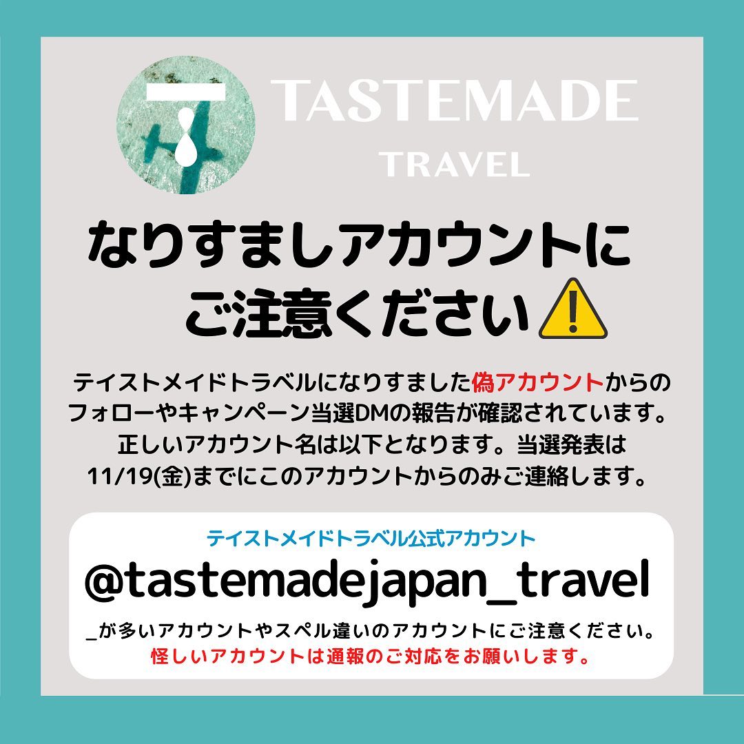 ⚠️偽アカウントにお気をつけください。もし怪しいDMが来たらInstagramへの通報をお願いします。このアカウント以外から当選ご連絡することはありません。IDを微妙に変えたアカウントからのフォローにご注意ください。