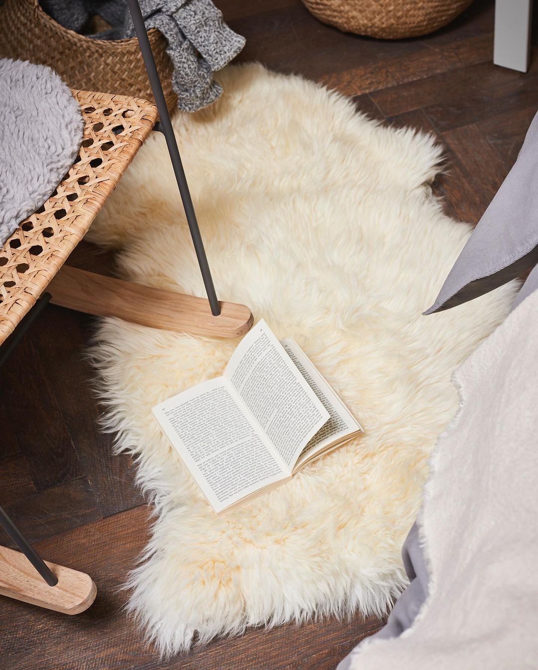 冷えやすい足先を寒さから守ってくれるのは、包み込まれるような柔らかい素材のラグ。パーソナルチェアやベンチにかぶせて、温もりのある部屋へ模様替えをしても。