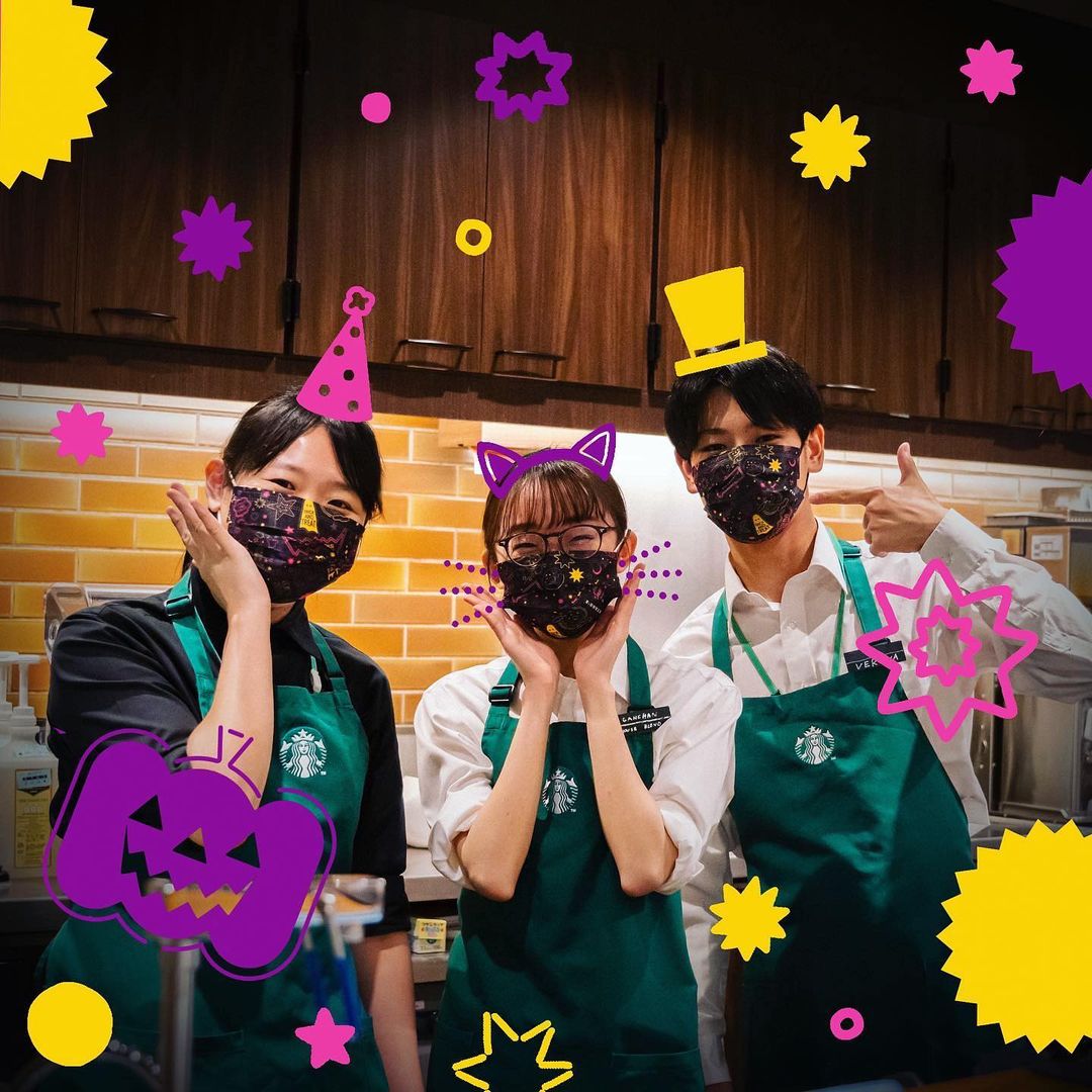 @Starbucks Starbucks: 明日はいよいよハロウィン スターバックスのバリスタたちも、お揃いのハロウィンマスクでみなさまをお迎えしています お気に入りのドリンクやフードと一緒に、いつもとは… 2021-10-30 明日はいよいよハロウィン🎃👻 スターバックスのバリスタたちも、お揃いのハロウィンマスクでみなさまをお迎えしています😊✨ お気に入りのドリンクやフードと一緒に、いつもとは違ったハロウィン気分高まるひとときを過ごしませんか💜 #スターバックス #ハロウィン #Halloween Ciao, Nihon.