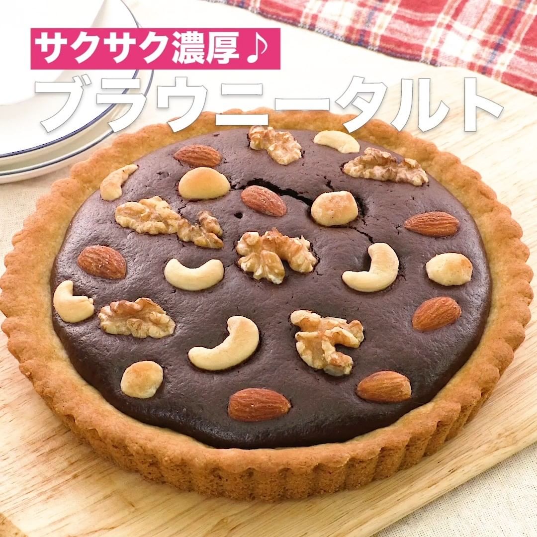 サクサクタルトと濃厚ブラウニーを1度に楽しめる贅沢スイーツ!ホットケーキミックスで使って簡単に作れます。