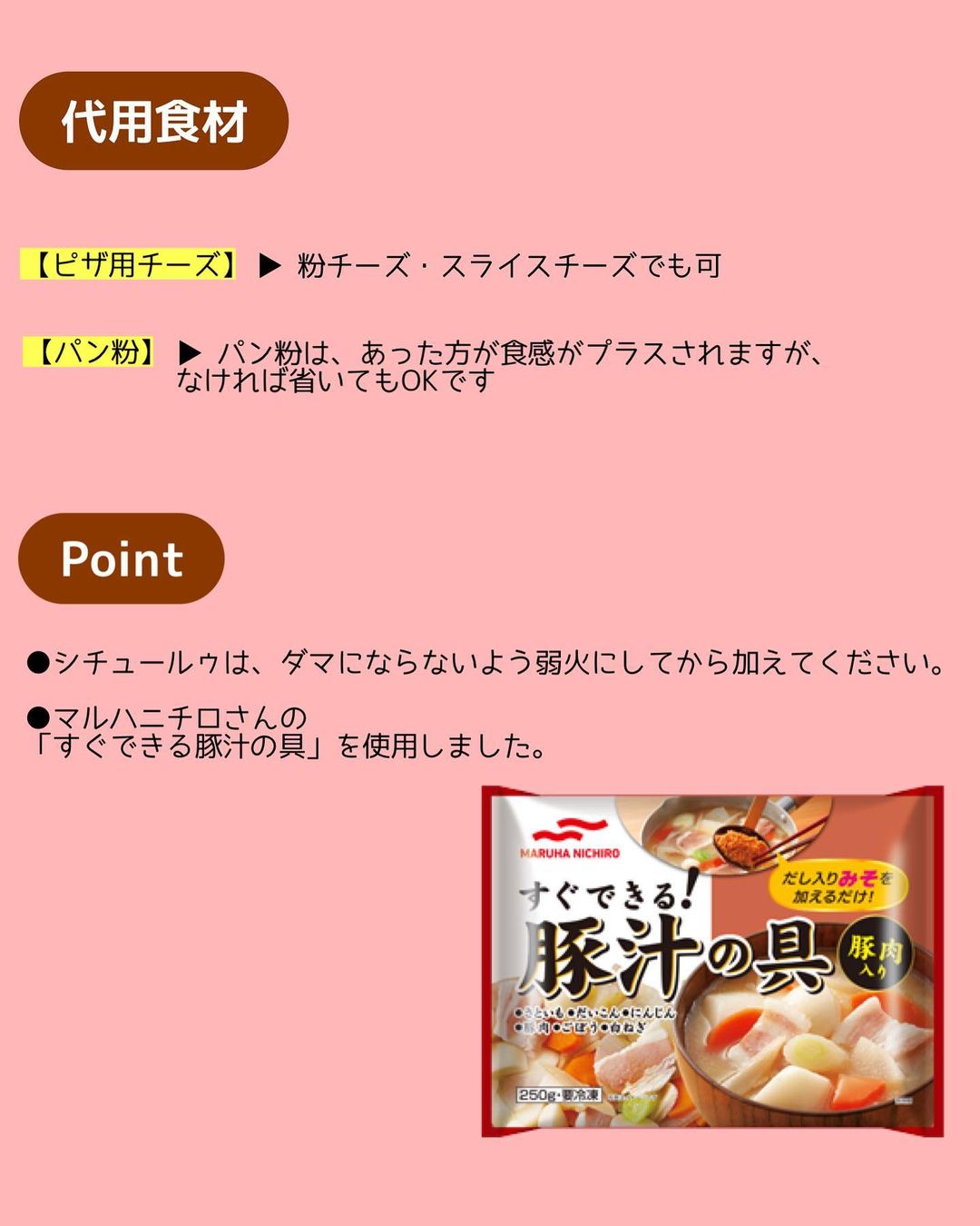 今回は、マルハニチロさんの「すぐできる豚汁の具」を使ったアレンジレシピ♬