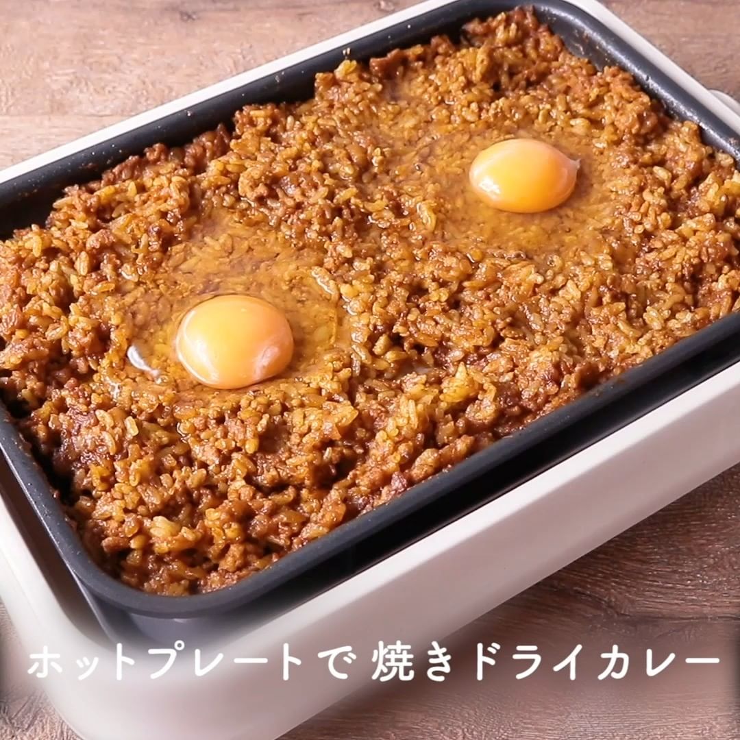 ①ホットプレートで 焼きドライカレー