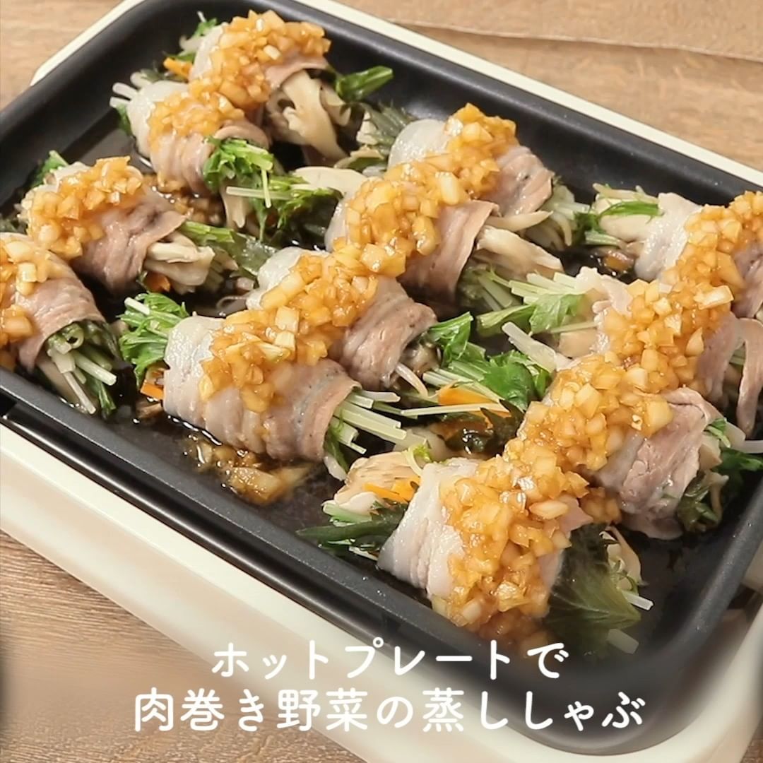 ④ホットプレートで肉巻き野菜の蒸ししゃぶ