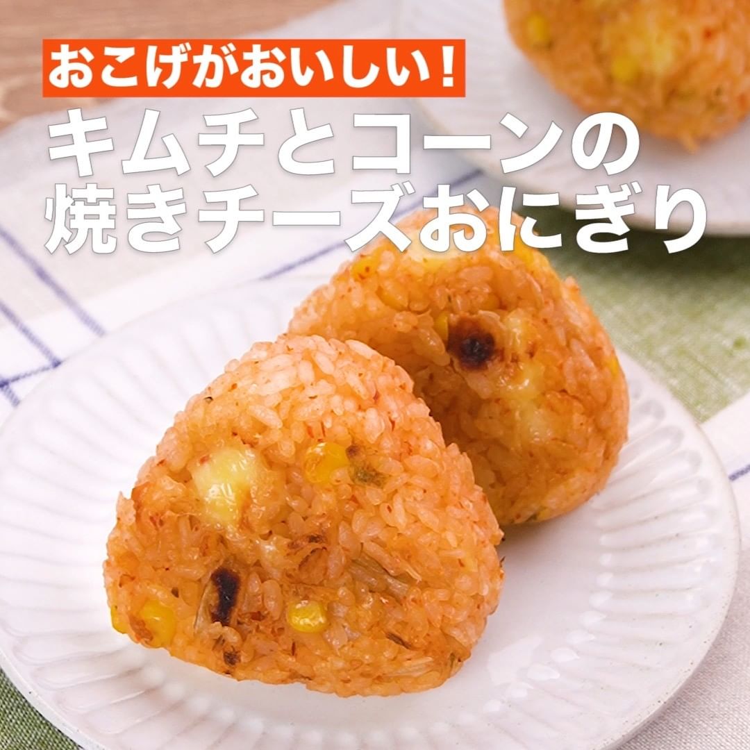 ①<お焦げがおいしい!キムチとコーンの焼きチーズおにぎり>