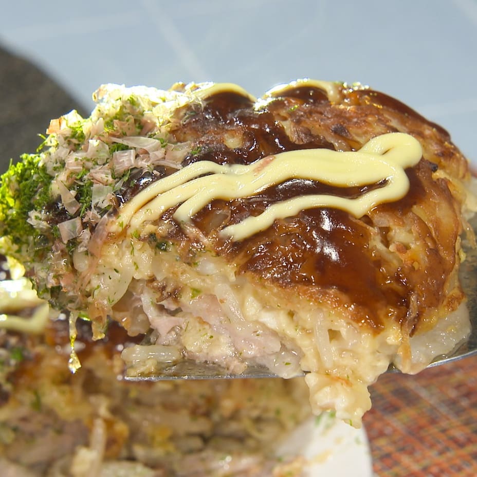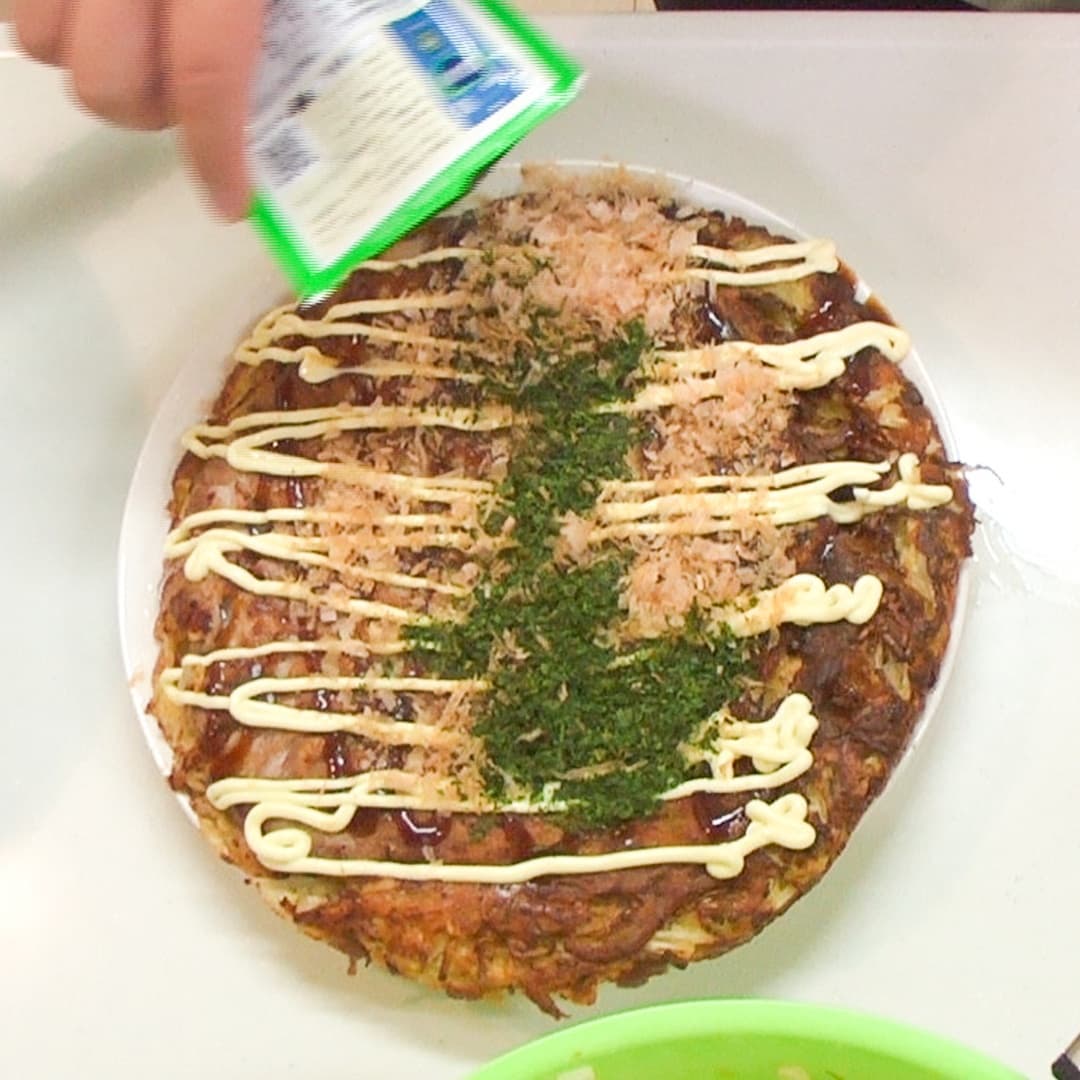 ⑤両面焼けたらお皿にのせソース、マヨネーズ、かつお節、青のりをお好みでかけて完成!