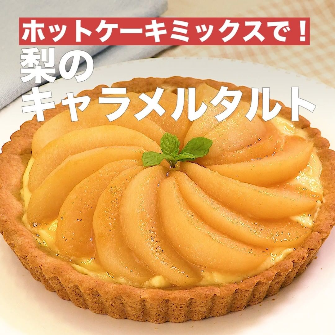 ①<ホットケーキミックスで!梨のキャラメルタルト>