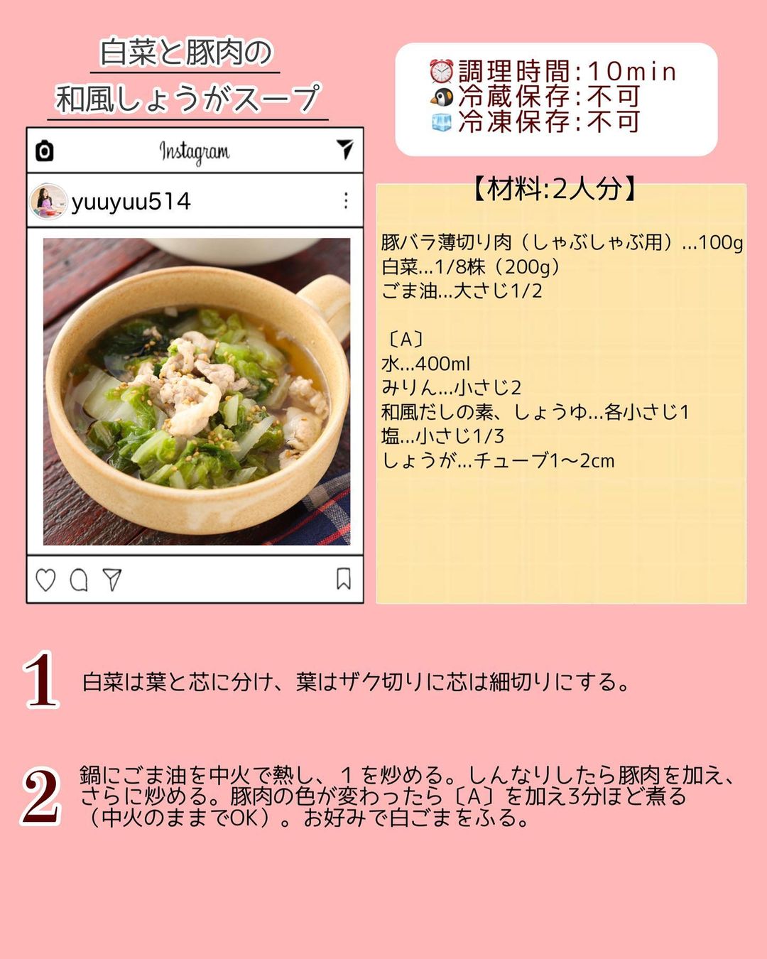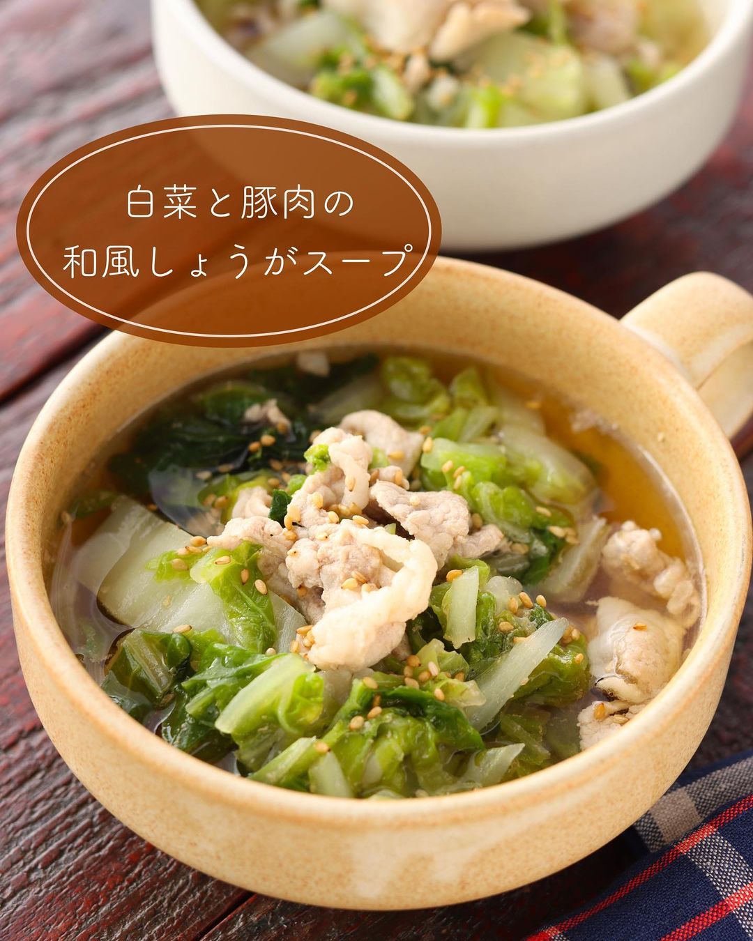 𓎩 #白菜と豚肉の和風しょうがスープ