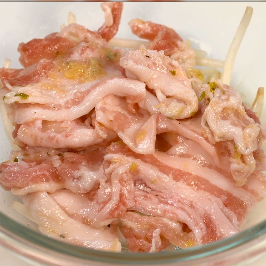 ★もやしの水蒸気が豚肉のパサつきを防ぎます!