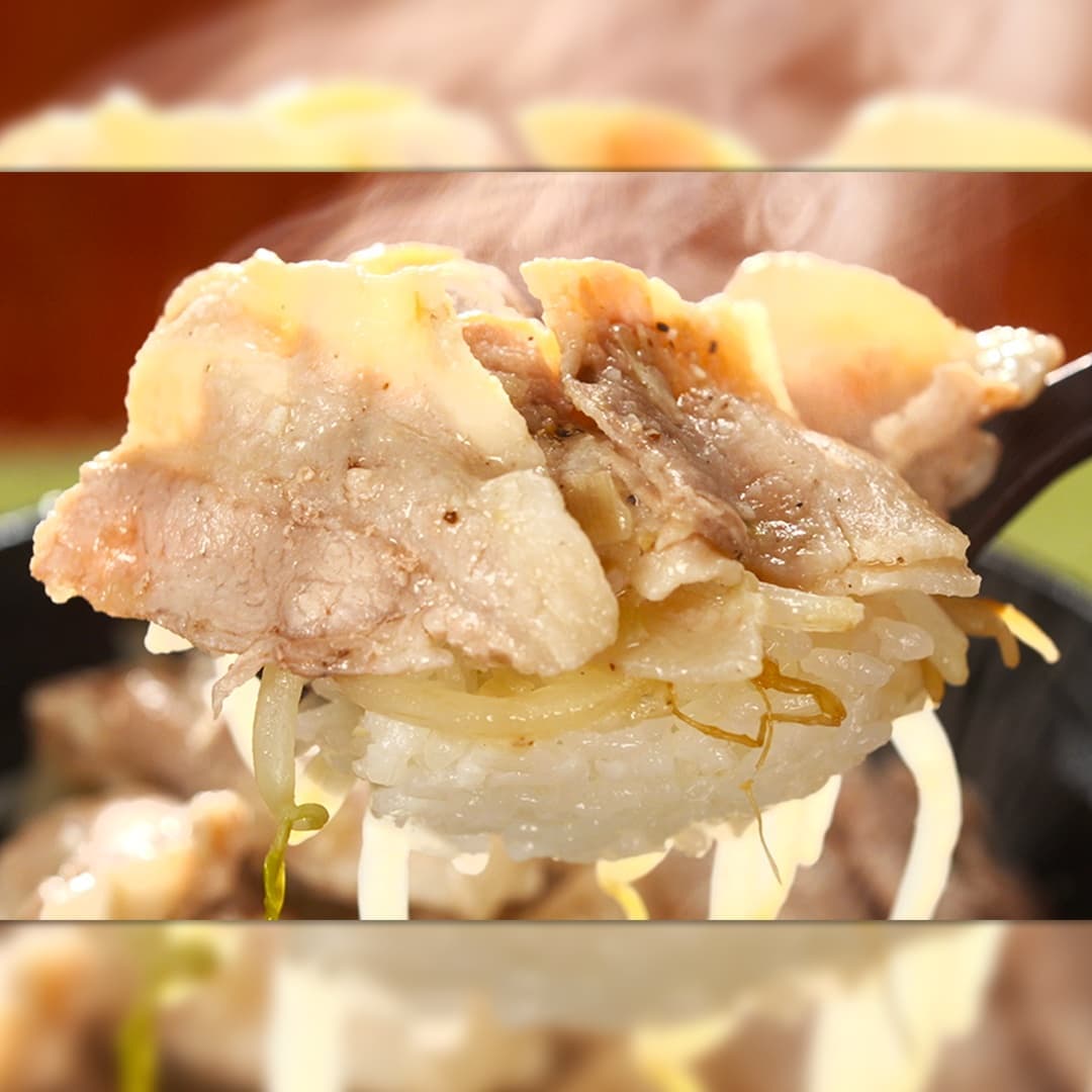 ⑦どんぶりのご飯に豚ねぎ塩をのせたら完成!