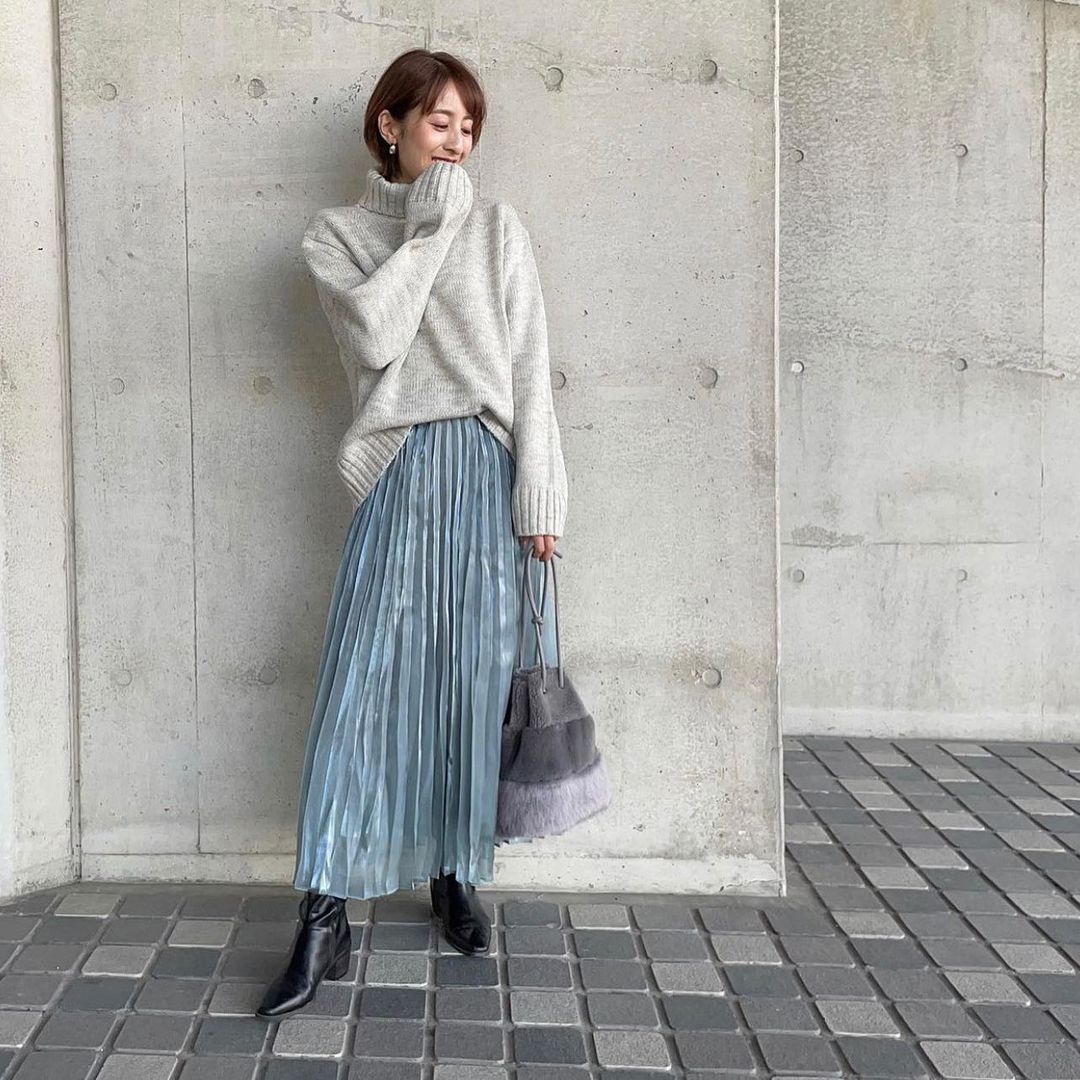 光沢感のある上品で高見えのプリーツスカートに