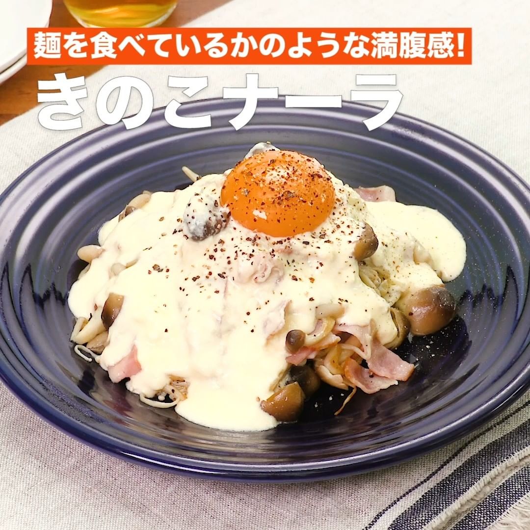 ②<麺を食べているかのような満腹感!きのこナーラ>