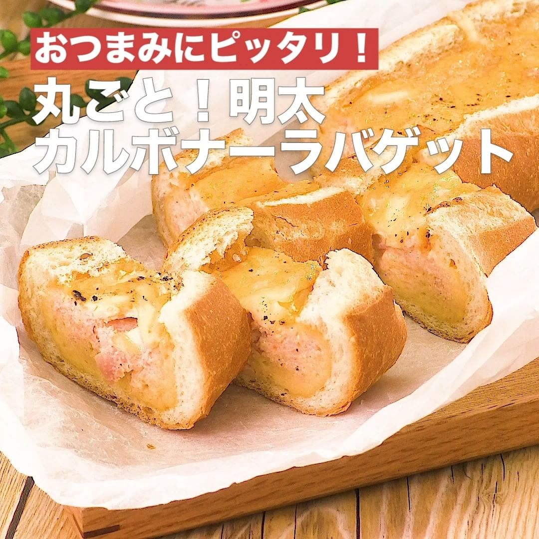 ④<おつまみにピッタリ!丸ごと!明太カルボナーラバゲット>
