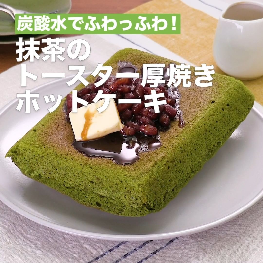 ④<炭酸水でふわっふわ!抹茶のトースター厚焼きホットケーキ>