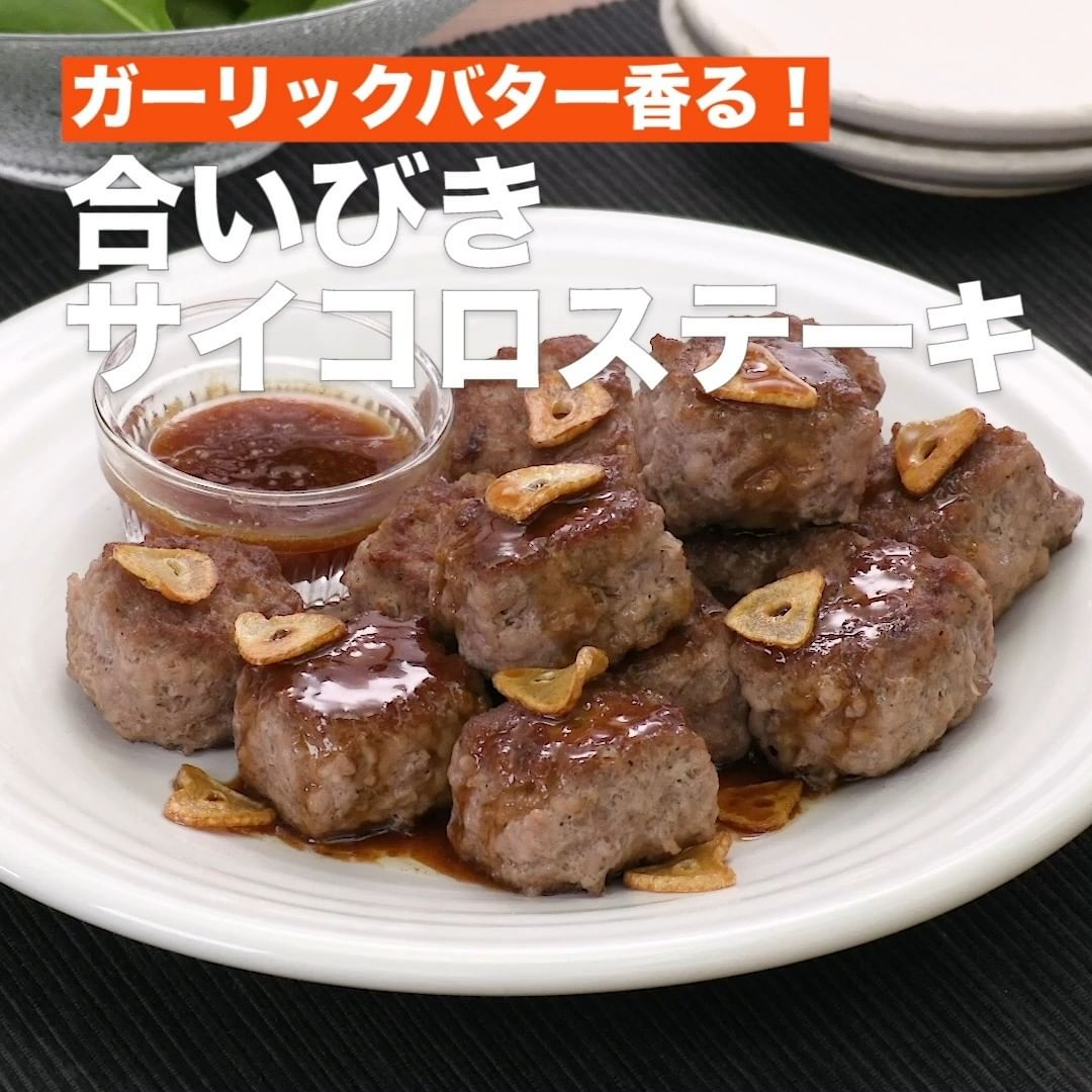 みんな大好きサイコロステーキを合いびき肉で再現しました!柔らかジューシーな仕上がりで、パクパク止まらない♪ガーリックバターソースが絡んで、ごはんが進みます♪
