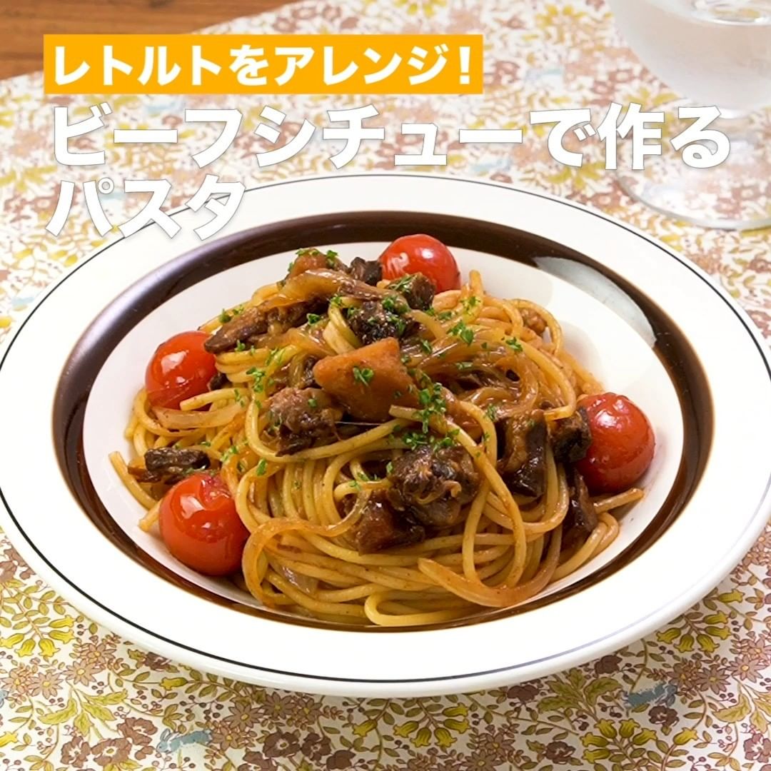 ④<レトルトをアレンジ!ビーフシチューで作るパスタ>
