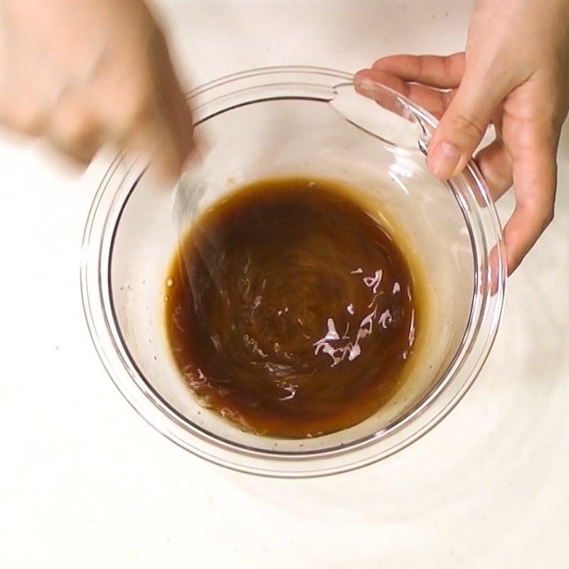 ③しょう油とみりん各約大さじ5、和風だし約大さじ1・1/2を混ぜ、600Wで30秒レンチンしだし醤油を作る