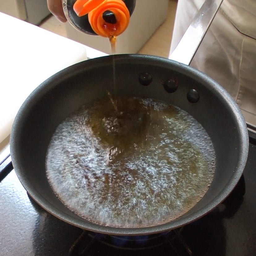 ⑥めんつゆ(2倍濃縮)を水1:1の割合で薄め火にかけ、だしを150~200ml作る