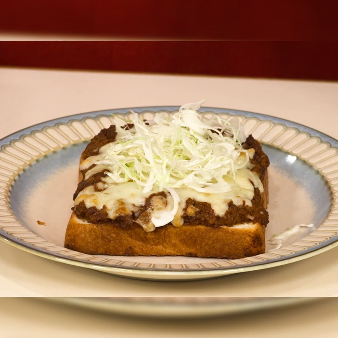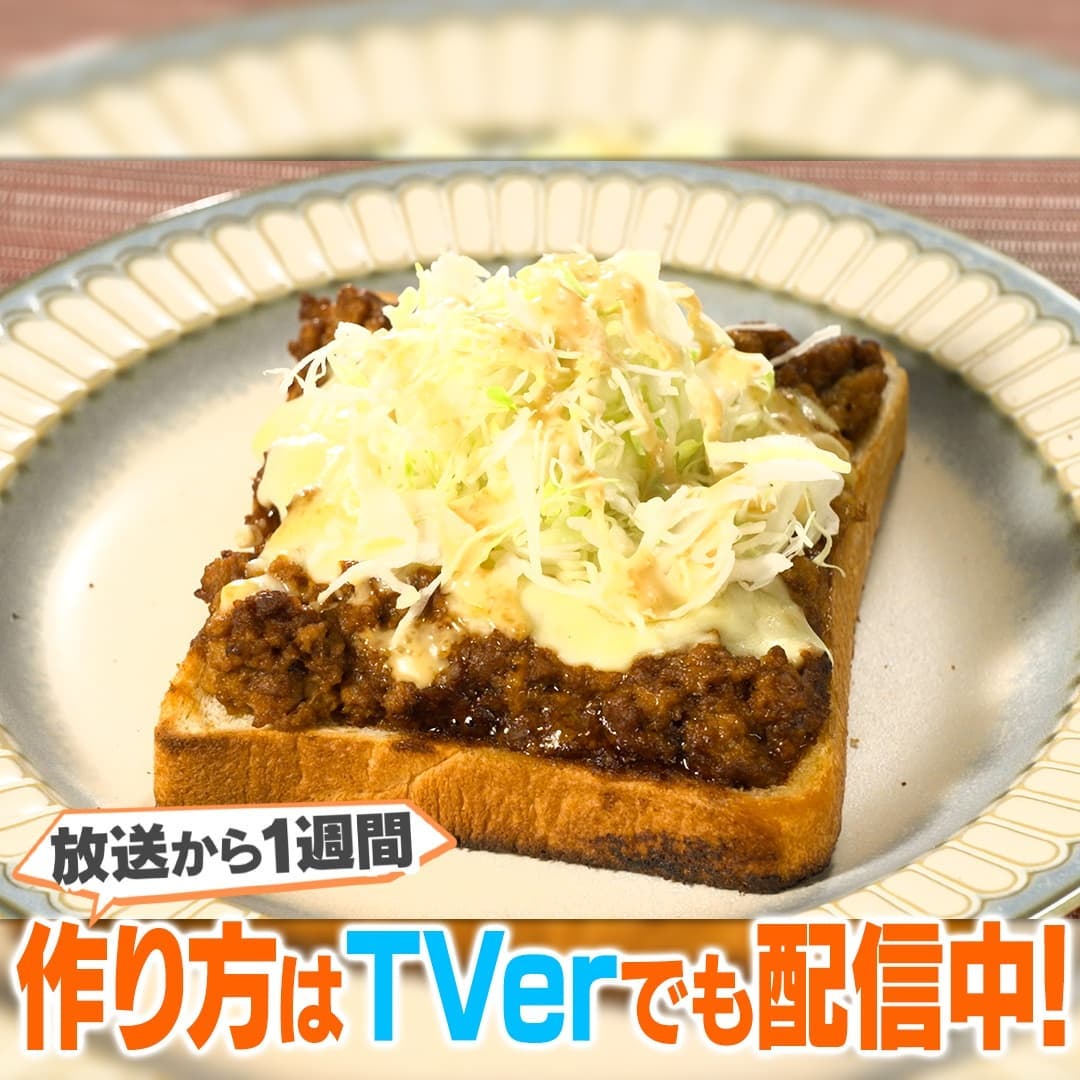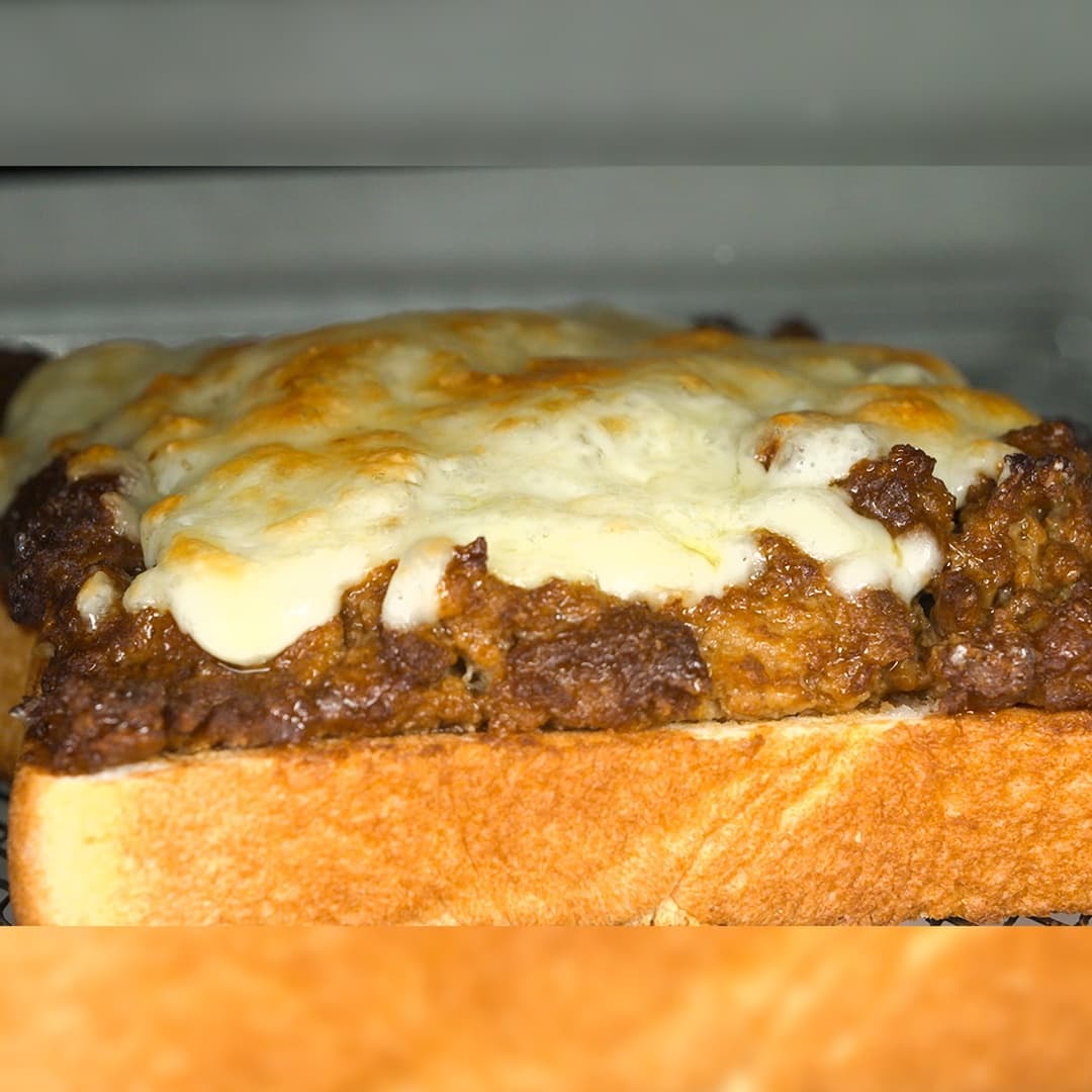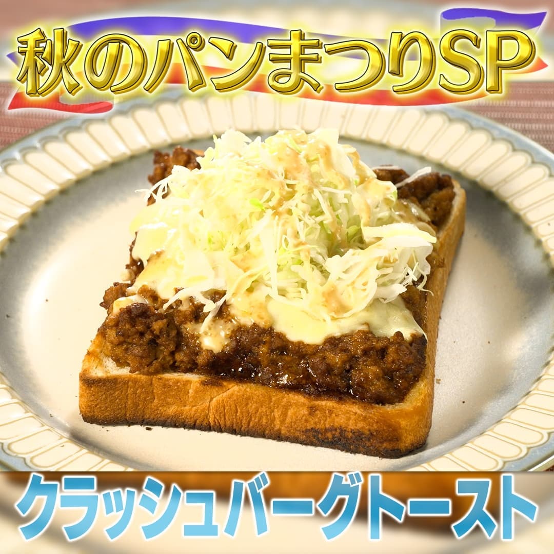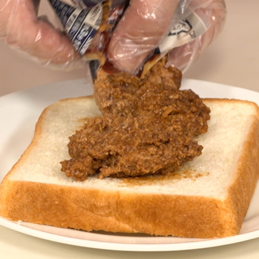 ②潰したハンバーグを食パン(6枚切り)にのせる