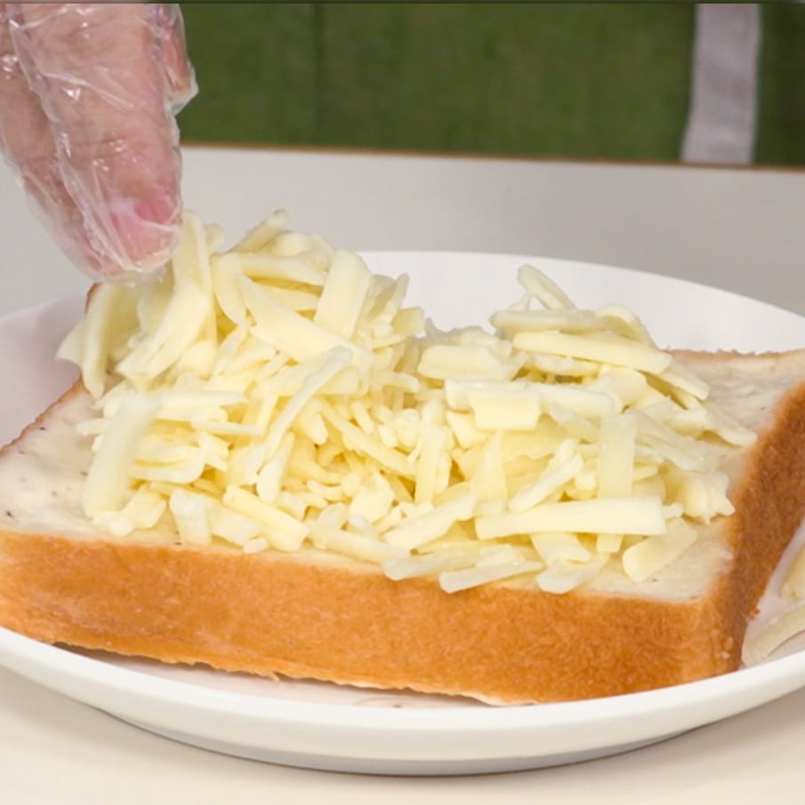 ②3種のミックスチーズ50gをどっさりのせる