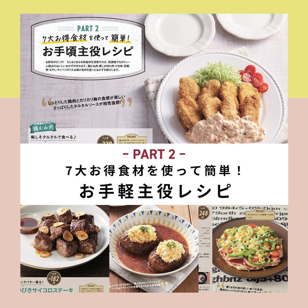 「7大お得食材」と称した鶏むね肉、豚こま肉、豆腐、キャベツ等を使った、簡単かつ華やかなレシピを紹介しています♪