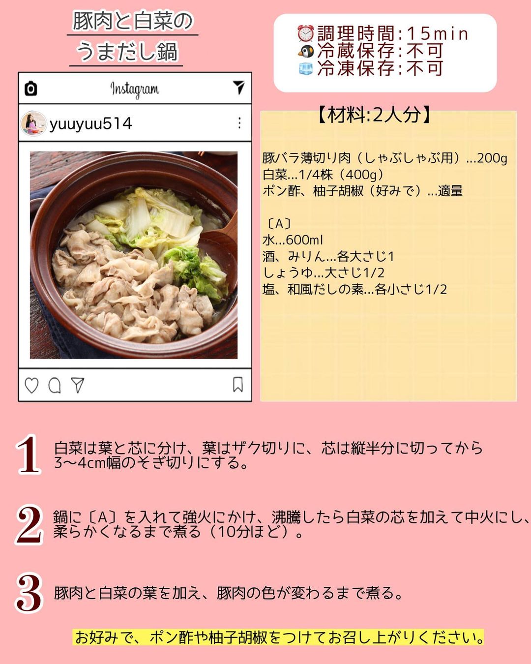𓎩 #豚バラ白菜のうまだし鍋