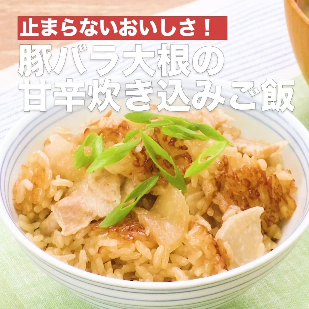 ⑤<止まらないおいしさ!豚バラ大根の甘辛炊き込みご飯>
