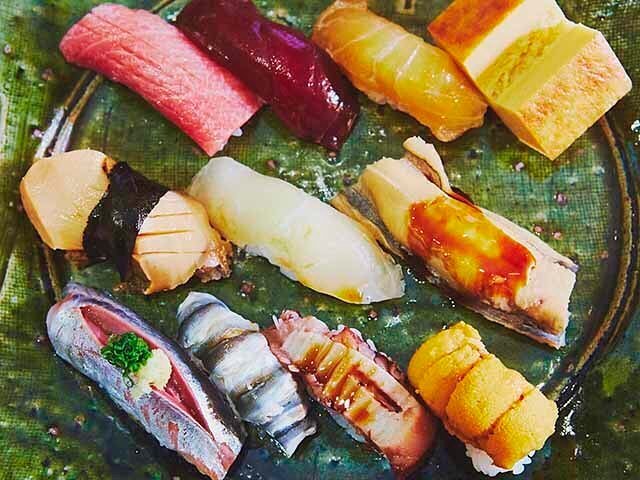 江戸前の「まっとうな寿司」が頂けることで人気の店、銀座『鮨 からく』の江戸前握り「真味」。