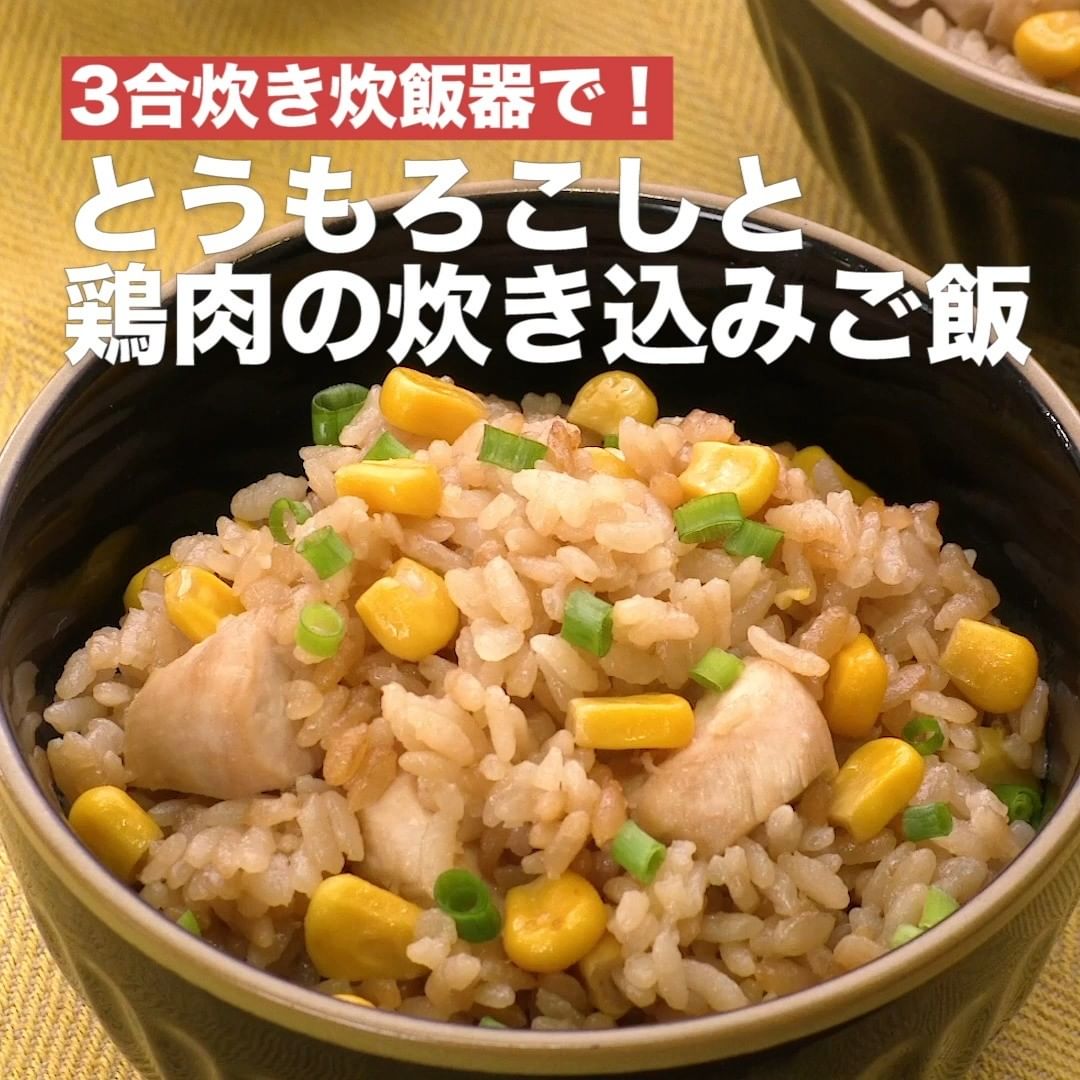 ④<3合炊き炊飯器で!とうもろこしと鶏肉の炊き込みご飯>