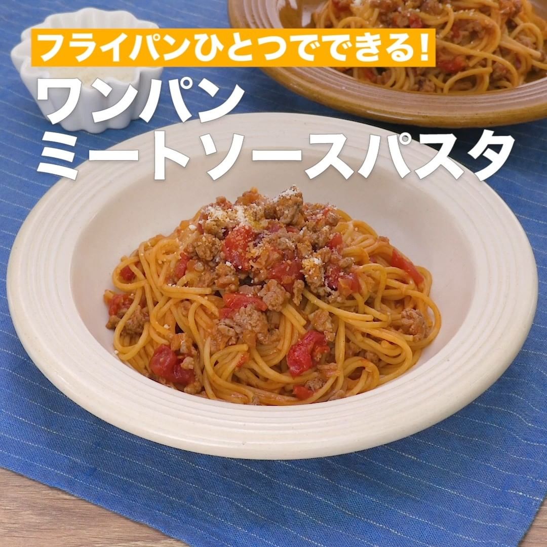 ②<フライパンひとつでできる!ワンパンミートソースパスタ>